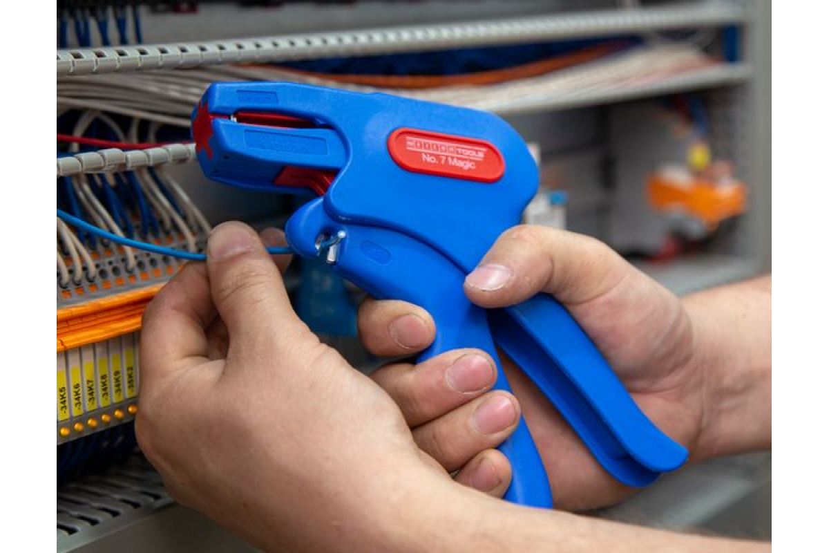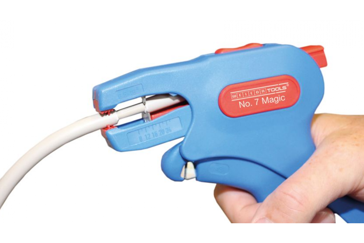 Weicon Wire Stripper No. 7-Magic (арт. 10018202) — це високотехнологічний автоматичний знімач ізоляції, розроблений для роботи з різними типами ізоляції та перерізами провідників. «Магія» цієї моделі полягає у бездоганному автоматичному підстроюванні, що забезпечує ідеальний результат без пошкодження жил.