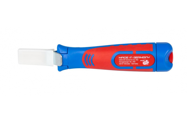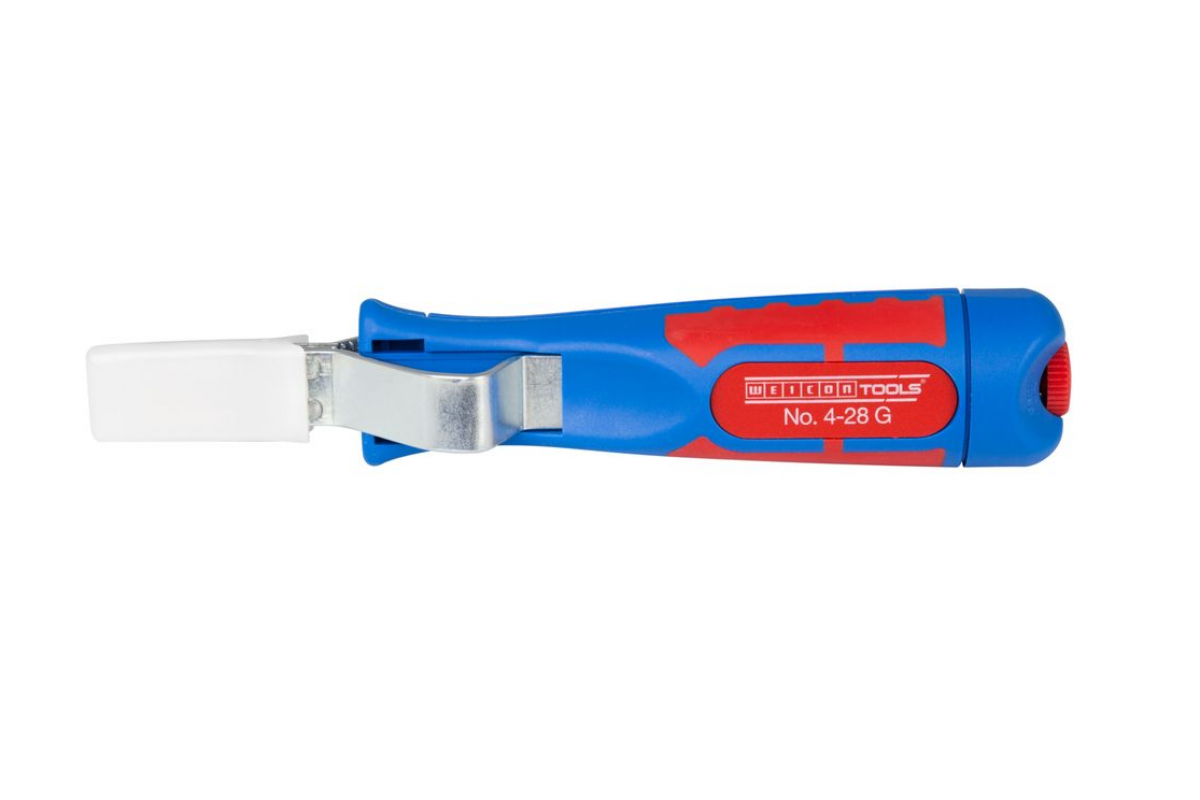 Weicon Cable Stripper No. 4-28 G (арт. 10012851) — професійний інструмент для зняття оболонки з усіх типів круглих кабелів діаметром від 4 до 28 мм. Відмінною рисою моделі «G» є наявність додаткового прямого леза, що значно розширює функціональність інструменту під час монтажу.