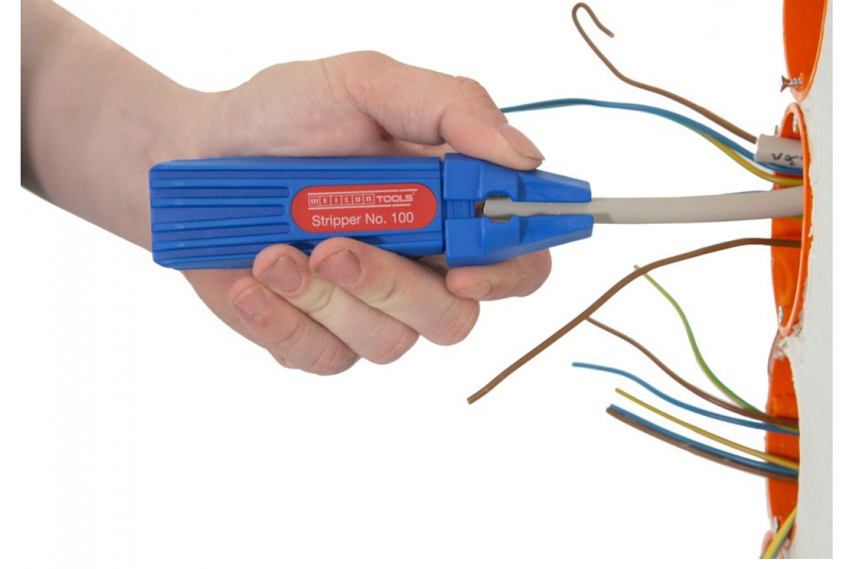 Weicon Stripper No. 100 (арт. 10006798) — це багатофункціональний інструмент, спеціально розроблений для швидкого та безпечного зняття оболонки з усіх поширених круглих та плоских кабелів. Завдяки продуманій конструкції, він забезпечує точне зачищення навіть у глибоких підрозетниках та розподільчих коробках.