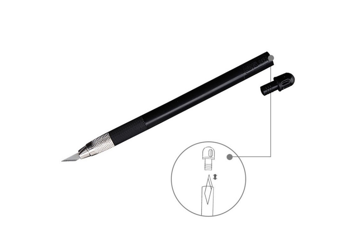 Він має дуже гостре лезо та призначений для акуратного та точного різання паперу, картону, плівки тощо.