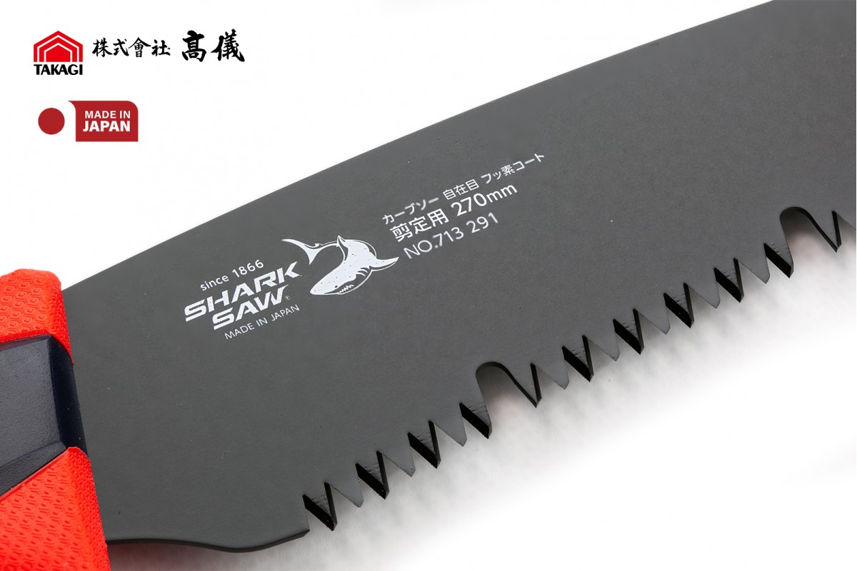 Японська ручна садова пила TAKAGI SHARK SAW вигнута з поясним чохлом і з фторопластовим покриттям леза, для смолистих порід дерева, 7 TPI, 270 мм