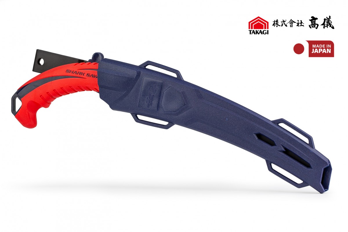 Професійна вигнута японська ручна обрізна пила від SHARK SAW з довжиною полотна 270 мм у чохлі та пластиковою прогумованою ручкою для саду.