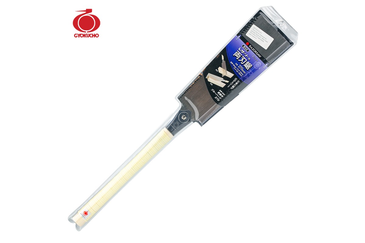 - Професійна двостороння японська ручна пила Ryoba від GYOKUCHO з довжиною полотна 270 мм.