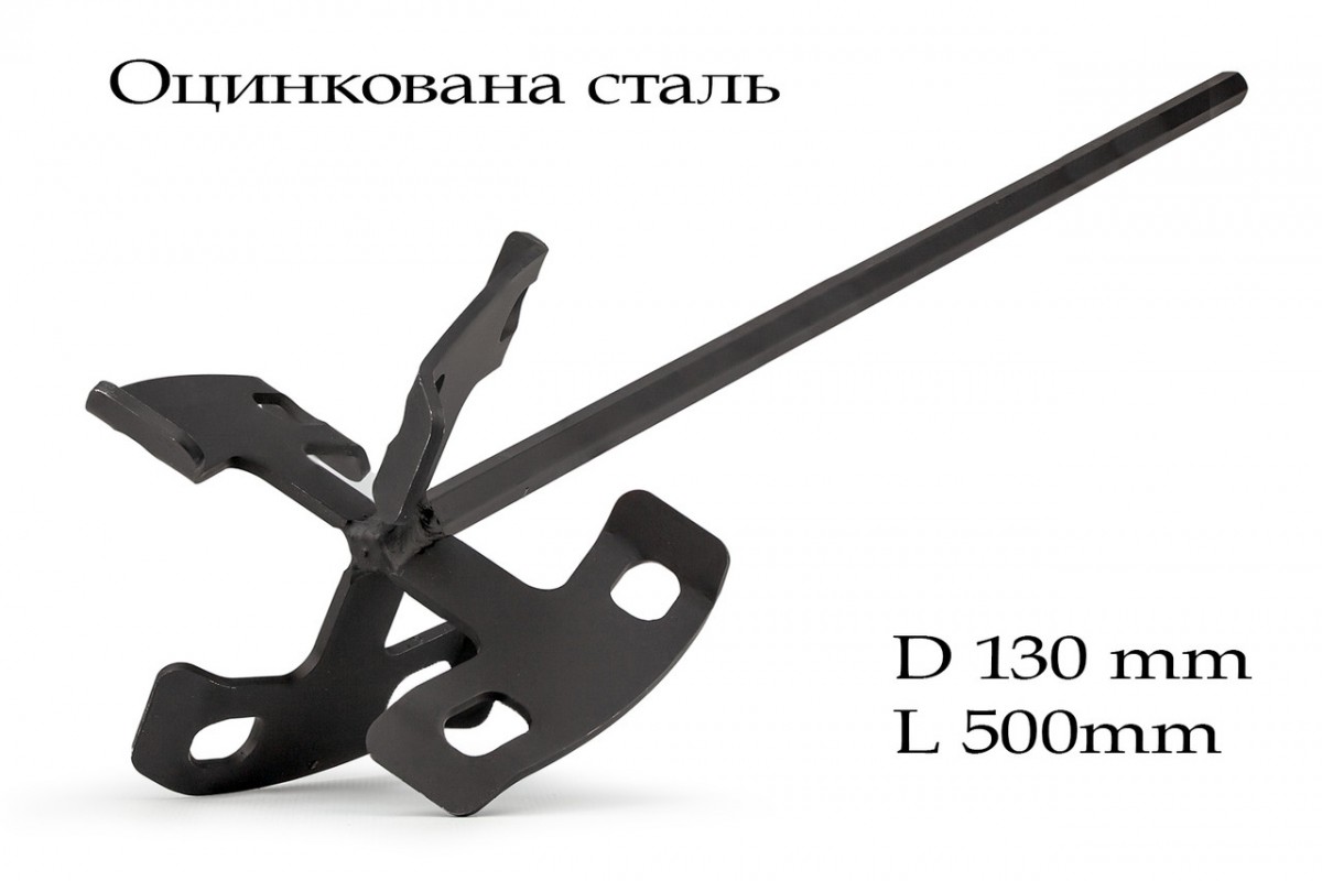 Міксер насадка для будівельних сумішей оцинкований, хвостовик шестигранник S10 Ø 130 мм x 530 мм
