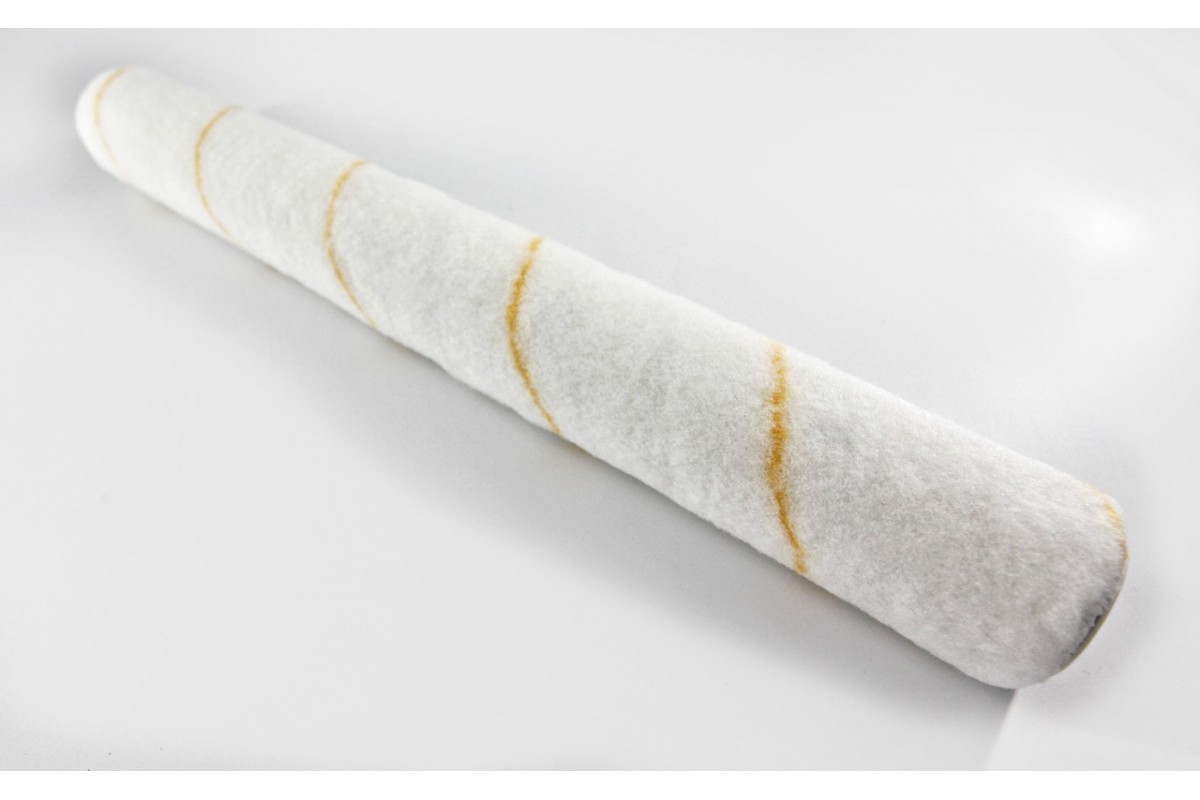 Шубка валика з високощільної білої тканини із золотою смужкою під час фарбування залишається еластичною та пручається злипанню ворсинок.