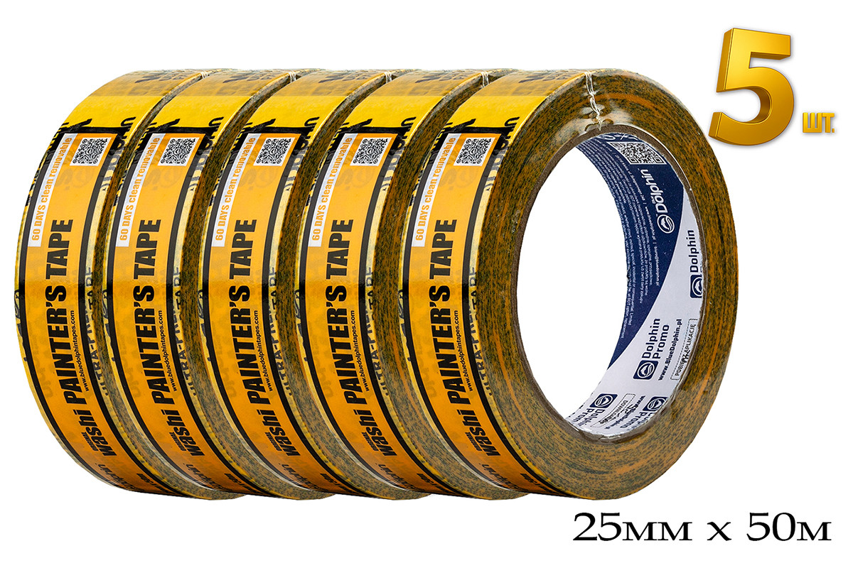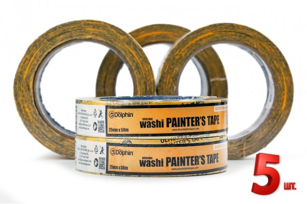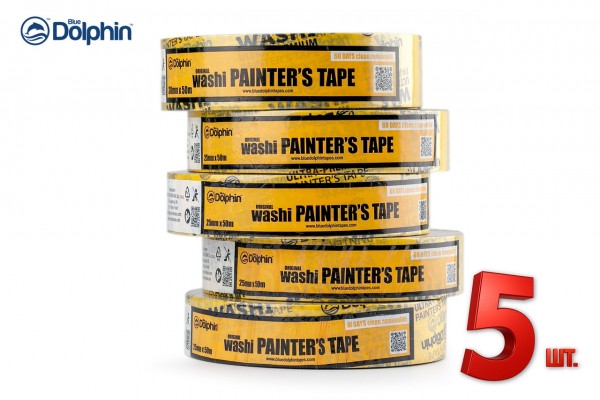 Малярська стрічка (скотч) Blue Dolphin WASHI XF7 рисовий папір 25 мм х 50 м, 5 шт