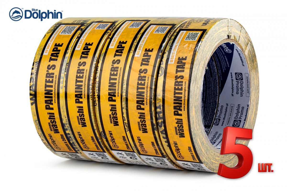 Малярна стрічка Blue Dolphin WASHI виготовлена з натурального Японського рисового паперу, дуже тонка та міцна. Оснащена спеціальним блокатором завдяки якому фарба не підтікає і стрічка не вбирає вологу, що дає можливість отримання ідеальних і чітких ліній, легко видаляється протягом 60 днів, не підриваючи фарбу і не залишаючи слідів клею. Стійка до УФ-випромінювання.
