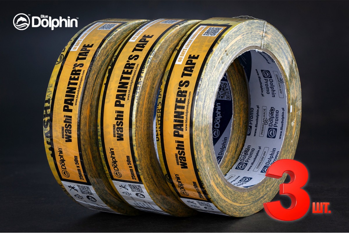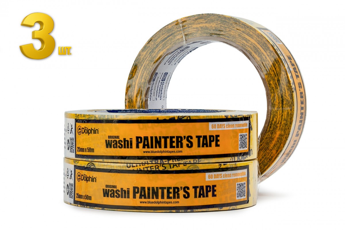 Малярська стрічка (скотч) Blue Dolphin WASHI XF7 рисовий папір 25 мм х 50 м, 3 шт
