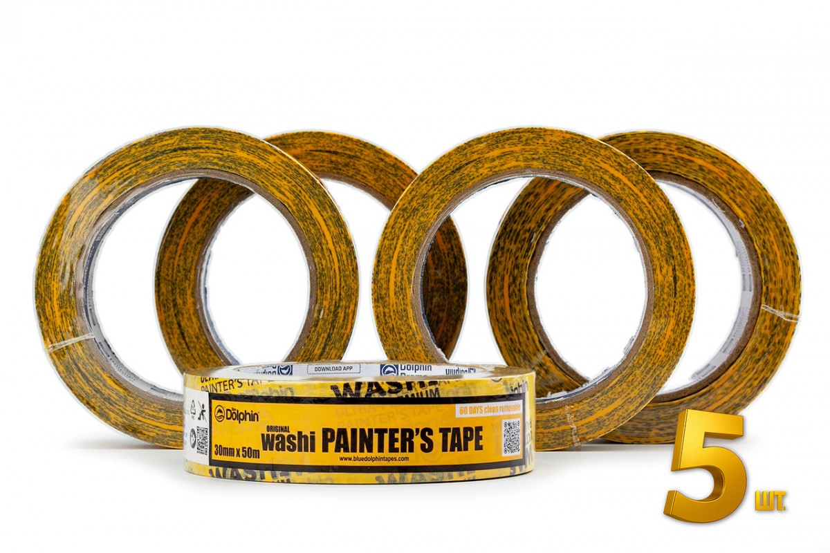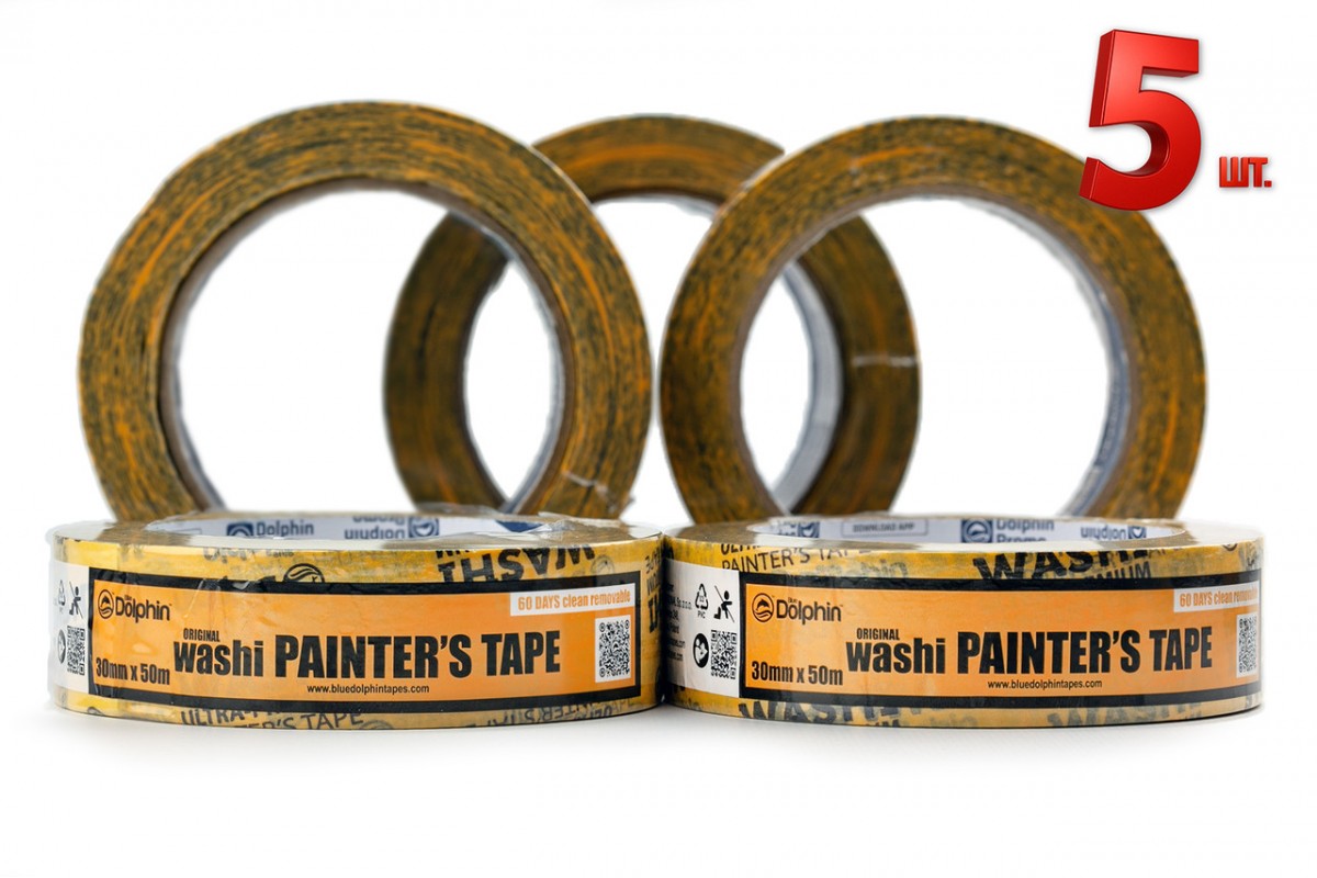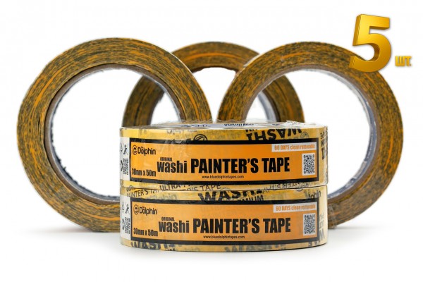 Малярна стрічка (скотч) Blue Dolphin WASHI XF7 рисовий папір 30 мм х 50 м, 5 шт