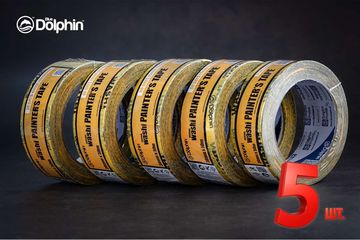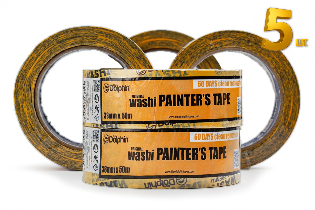 Малярна стрічка (скотч) Blue Dolphin WASHI XF7 рисовий папір 38 мм х 50 м, 5 шт