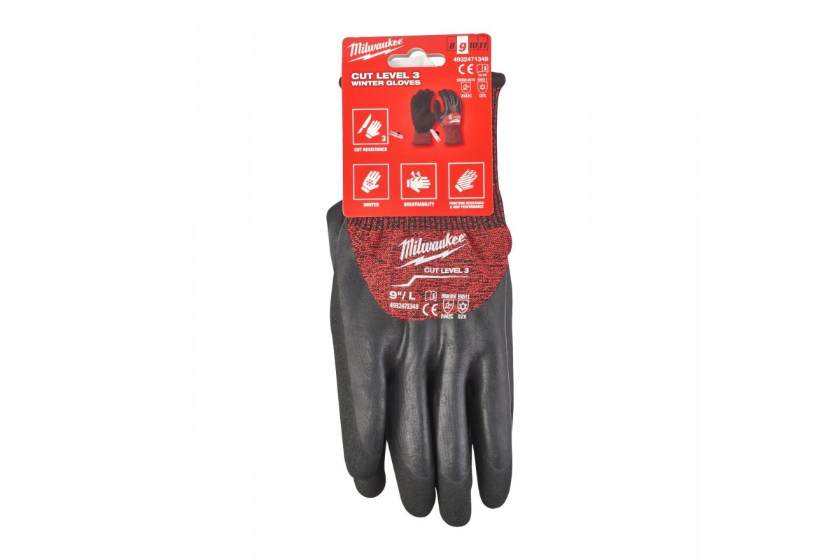 Рукавички зимові Milwaukee із захистом від порізів, рівень 3, розмір L/9 — 1 пара