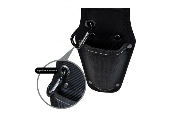 Додатковий карабін - кріплення дозволяє швидко та надійно закріпити допоміжний інструмент. Внутрішня частина посилена, щоб запобігти проколу або пошкодженню тканини від гострих країв інструменту.