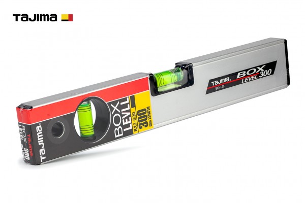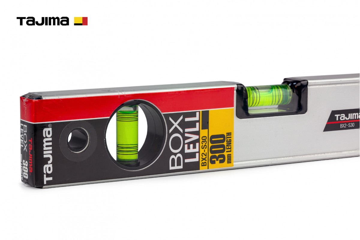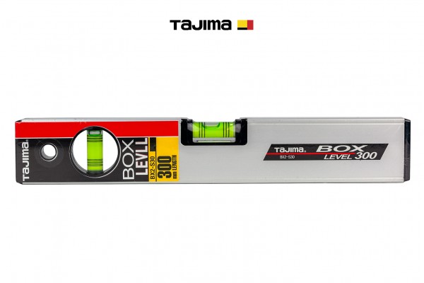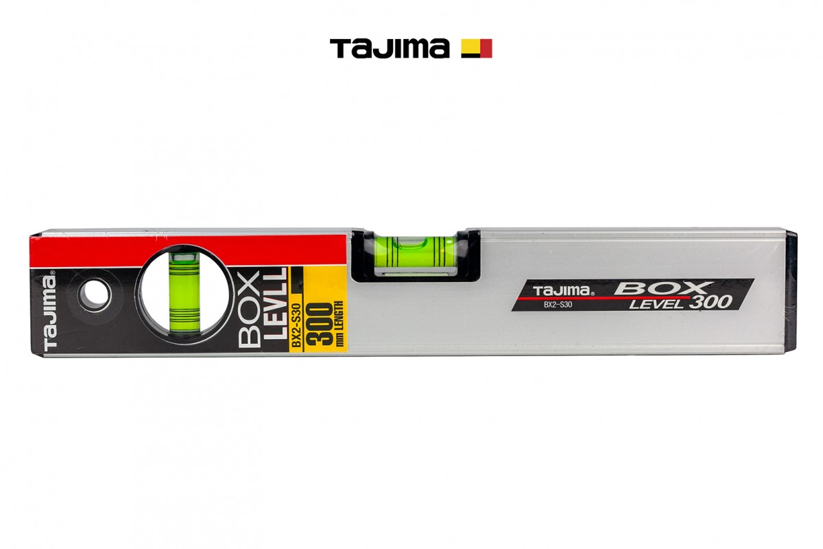 TAJIMA BOX BX2-S30 — професійний будівельний бульбашковий рівень довжиною 300 мм, призначений для високоточного контролю горизонтальних і вертикальних поверхонь під час будівельних, монтажних та оздоблювальних робіт.