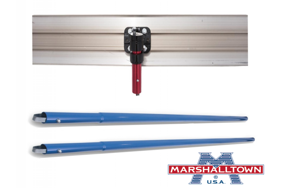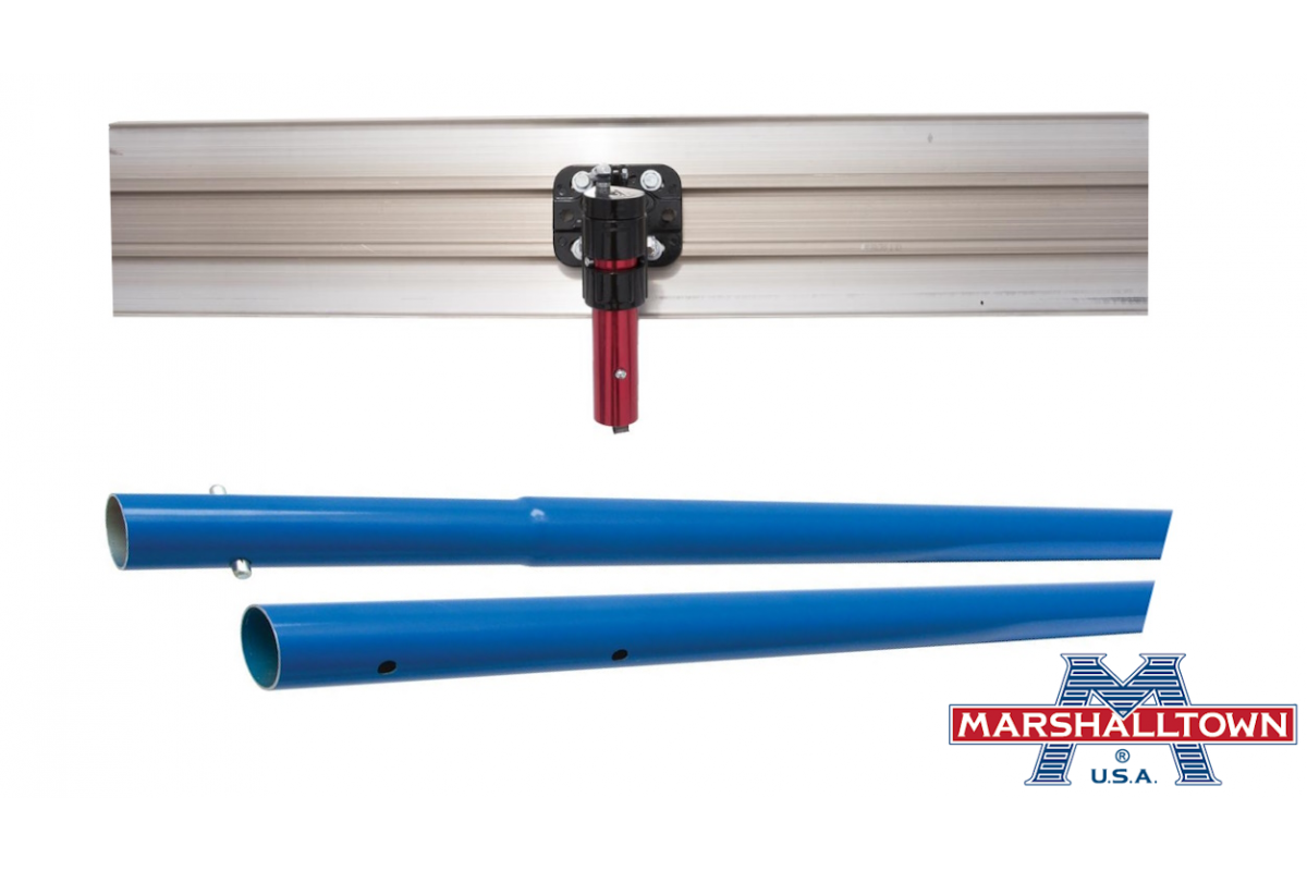 MARSHALLTOWN Magnesium Bull Floats поставляется в комплекте с редуктором Rock-It 2.0. и двумя удлинительными ручками по 1,8 м
