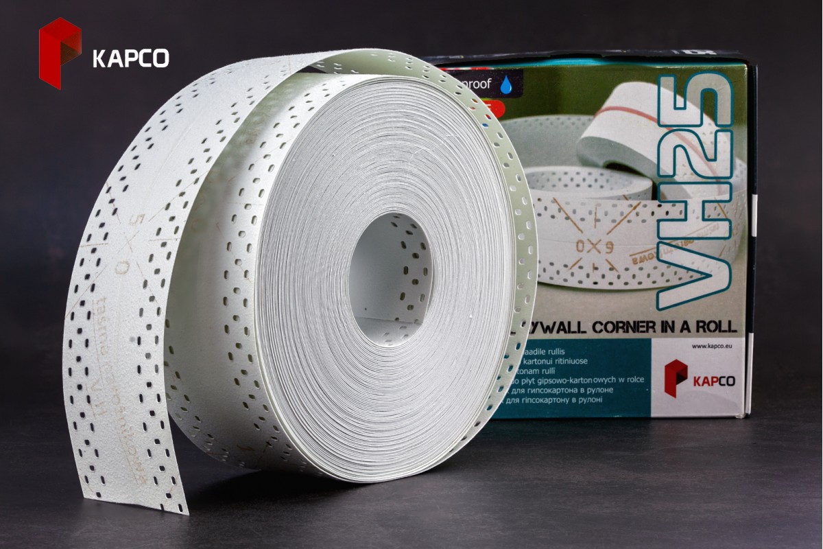 Композитна кутова стрічка для гіпсокартону KAPCO VH – це високоякісний продукт, який значно полегшує оздоблювальні роботи, захищає, зміцнює, а також надає естетичний вигляд кутовим з’єднанням гіпсокартону всередині приміщень.